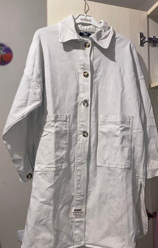 Düğmeli, keten kumaştan yapılmış, beyaz renkte salaş kesim uzun kollu kadın gömleği. Notch yaka ve ön cepler içerir, midi boyda, rahat sokak stiline uygun. Görsel de yer alan diğer renkleri de mevcut. M ve L bedenler içine uygundur