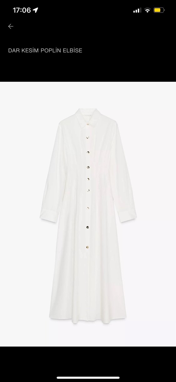 Zara marka Beyaz gold düğmeli , düğmeli ve uzun kollu keten kumaştan uzun elbise. Kayık yaka ve rahat kesimiyle modern klasik tarzı yansıtır. Günlük kullanıma uygundur. 1 kere2 saat giyildi .38.40 bedene uyumlu