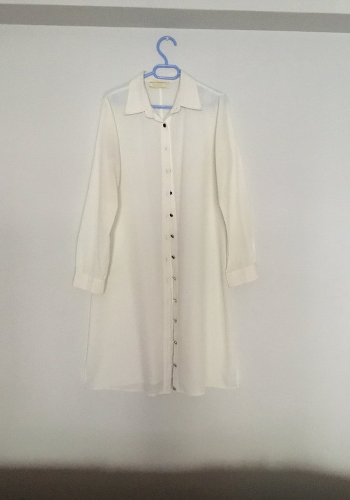 Düğmeli Beyaz Keten Uzun Kadın Gömlek