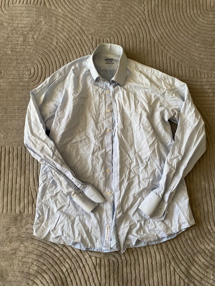 Beyaz keten gömlek, uzun kollu ve düğmeli. Regular kesim, yakalı ve desensiz tasarım ofis ve günlük kullanıma uygun.