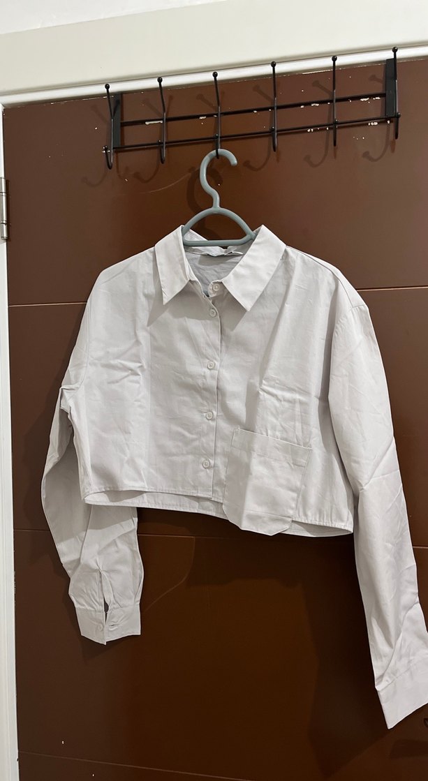 Beyaz keten kumaştan, uzun kollu, düğmeli ve yakalı bu gömlek, rahat kesimi ve kısa boyu ile günlük sokak stiline uygundur.