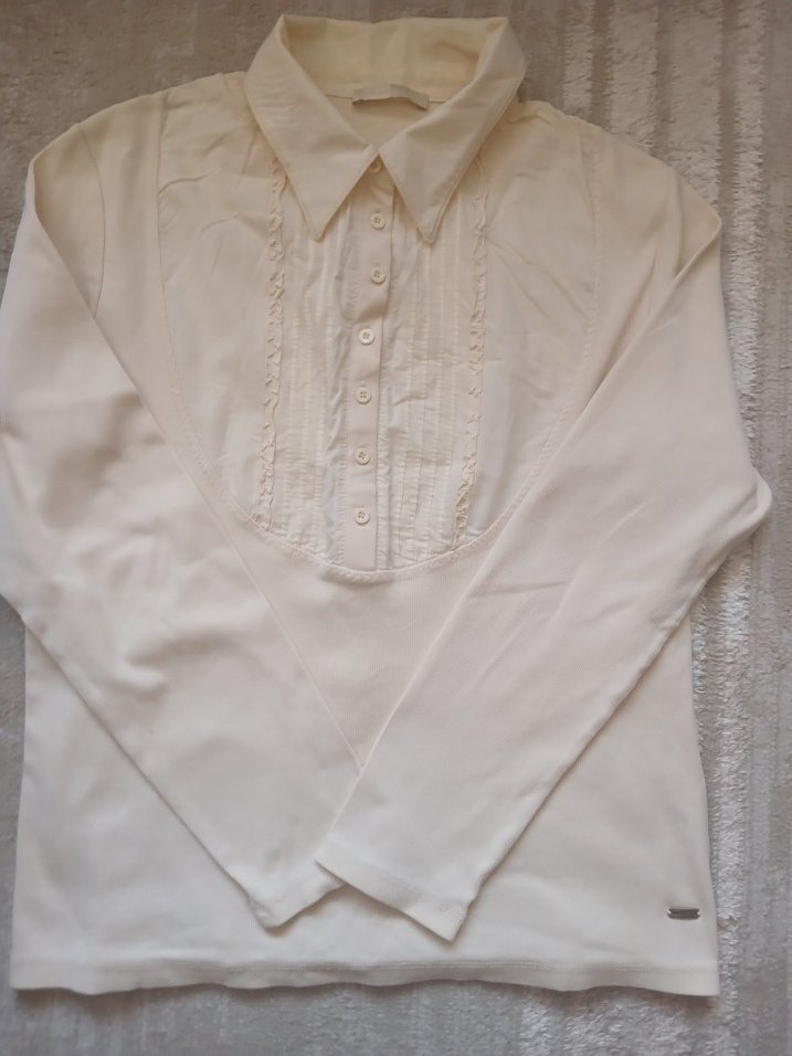 Beyaz keten kumaştan, düğmeli ve yakalı, uzun kollu kadın gömleği. Pastel tonlarda, sade ve bohem Paris tarzını yansıtan normal midi boyda, regular fit model. Son fotoda nokta kadar bi leke var yıkayınca çıkar fiyata yansitildi onun disinda hicbi sorunu yoktur