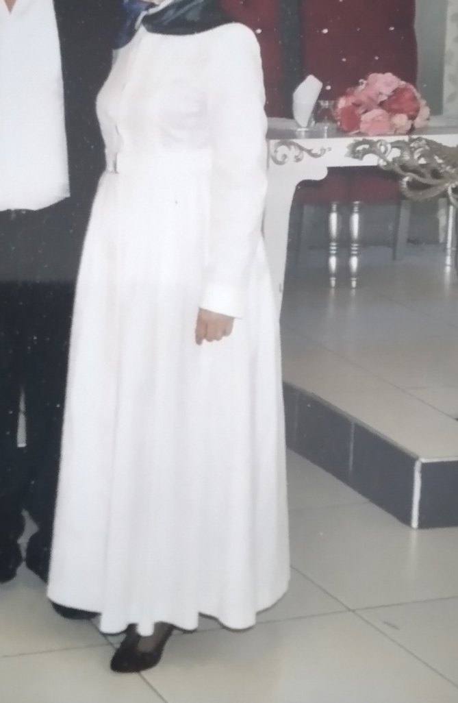 Beyaz uzun beli kemerli ve pileli 1 kere özel günde giyildi yeni bazanın altında durduğu için toızlandı.kuru temizlemeye verin yeniden farkı yok bedenine uyan kaçırmasın bu fiyata masadan alamazsınız.en son resimdeki eşarp hediyedir..boy: 136cm uzatma payı var.iki koltuk arası : 46 cm düğünde nişanda hicazet töreninde giyilir çok şık bir pardesü