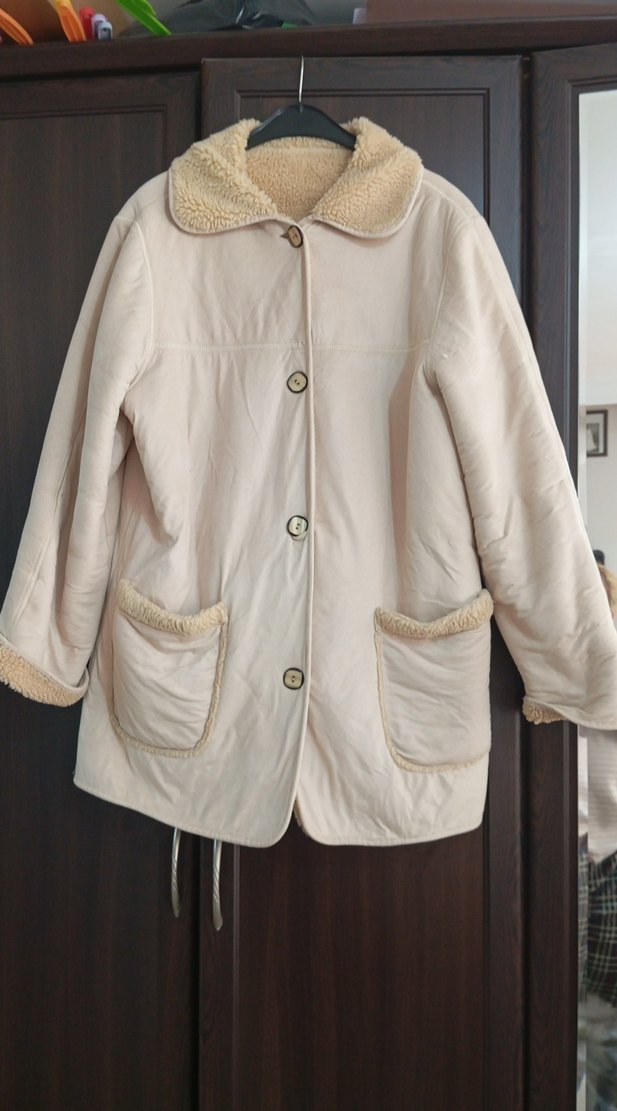Beyaz kısa ceket, düğmeli ve kesik yaka detaylıdır. Yumuşak ve sıcak kumaştan yapılmış, uzun kollu ve cepleri konforlu detaylara sahiptir. Günlük kullanıma uygundur. ️