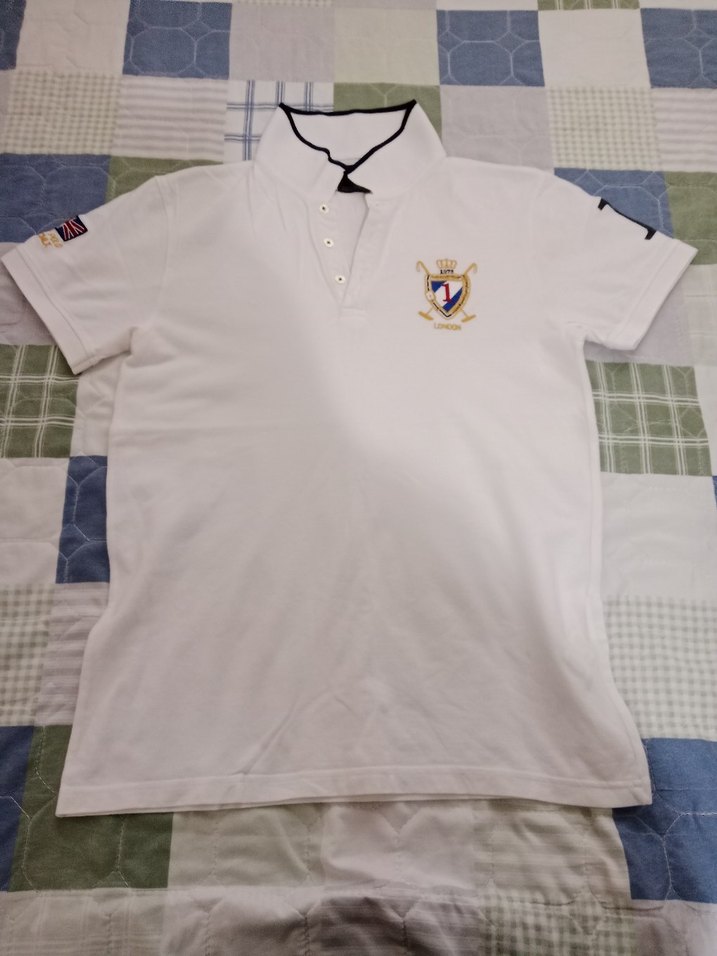 Pamuk kumaştan yapılmış, düğmeli yakalı ve kısa kollu beyaz erkek polo tişört. Baskılı detaylara sahip, günlük kullanım için uygun rahat ve şık bir model.