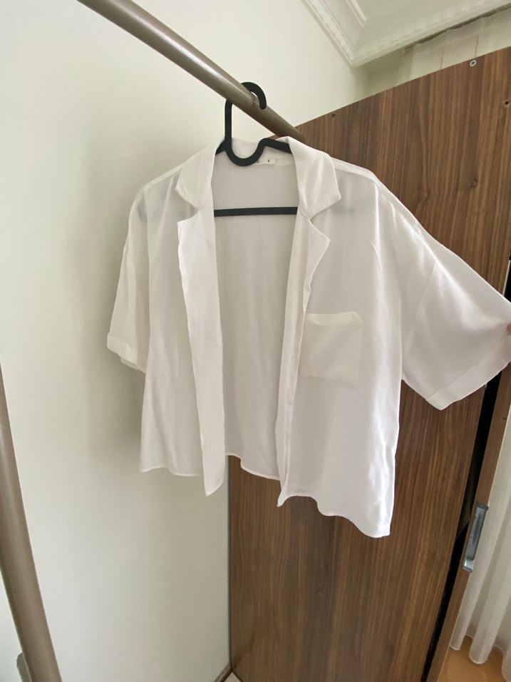 Düğmeli Beyaz Kısa kollu pamuklu gömlek kadın