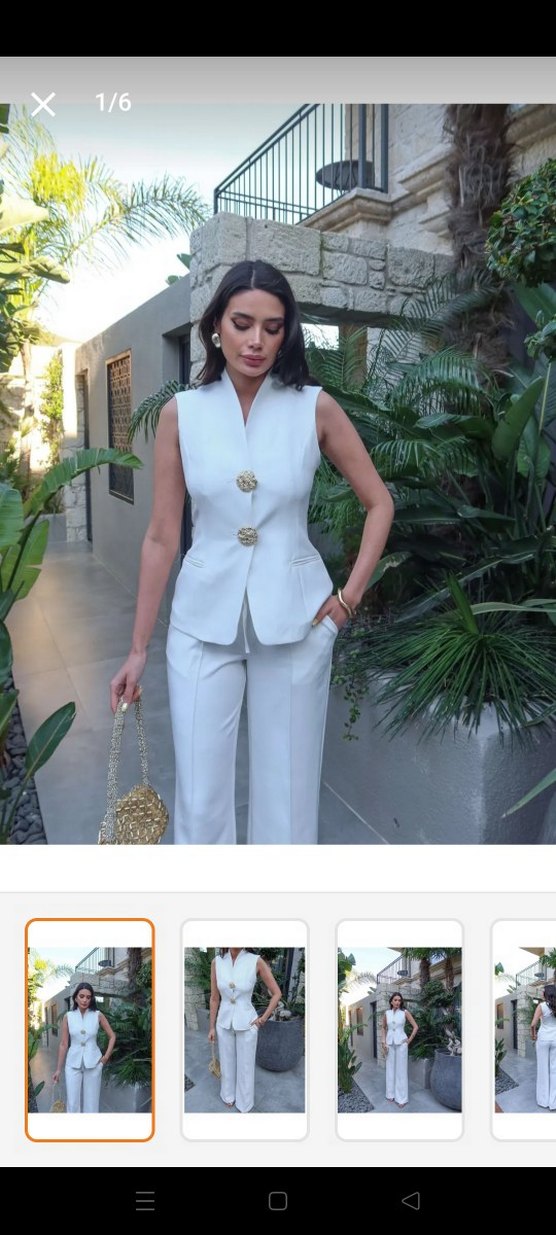 Düğmeli Beyaz Kolsuz Kadın Takım