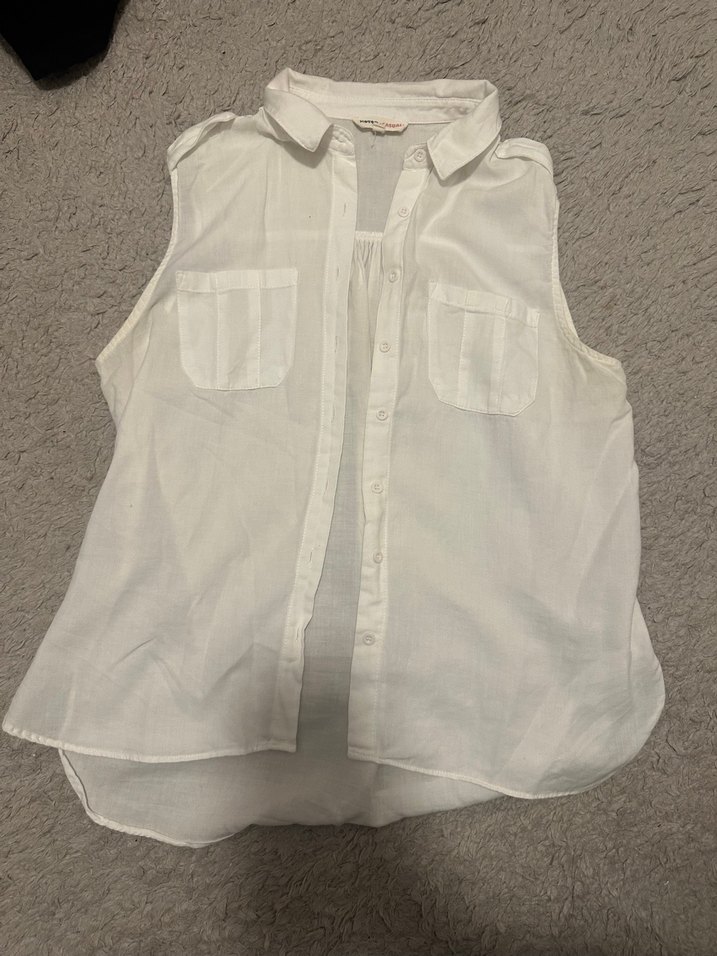 Düğmeli Beyaz Kolsuz Keten Gömlek