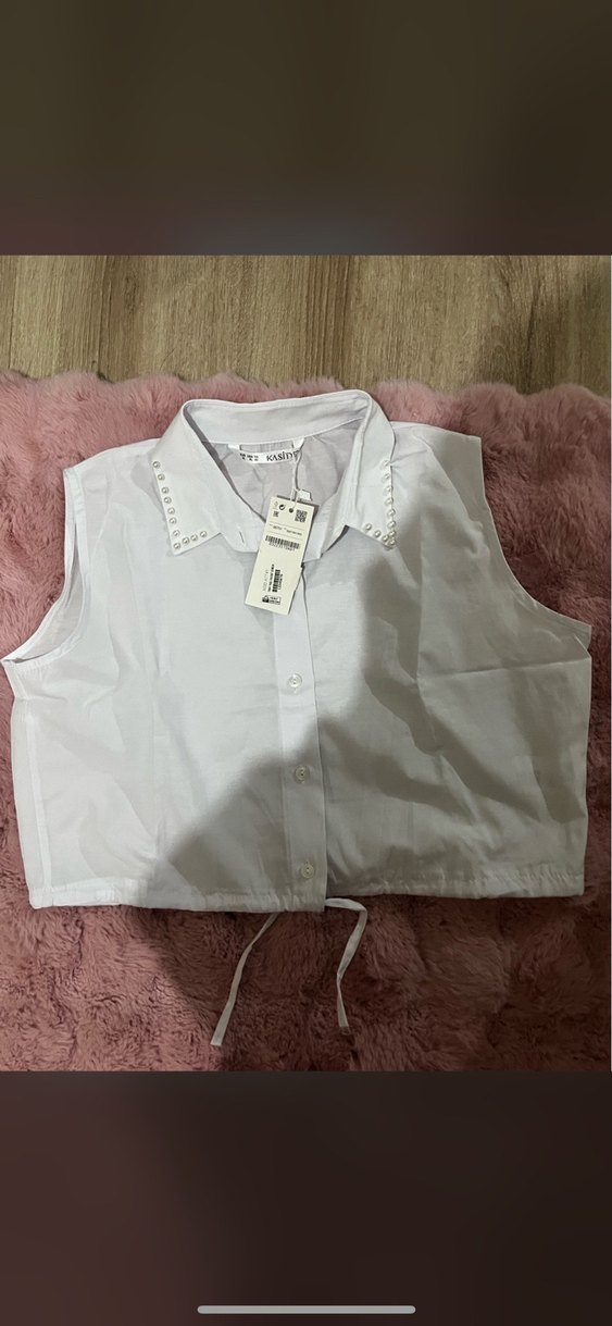 Düğmeli Beyaz Kolsuz Mini Gömlek