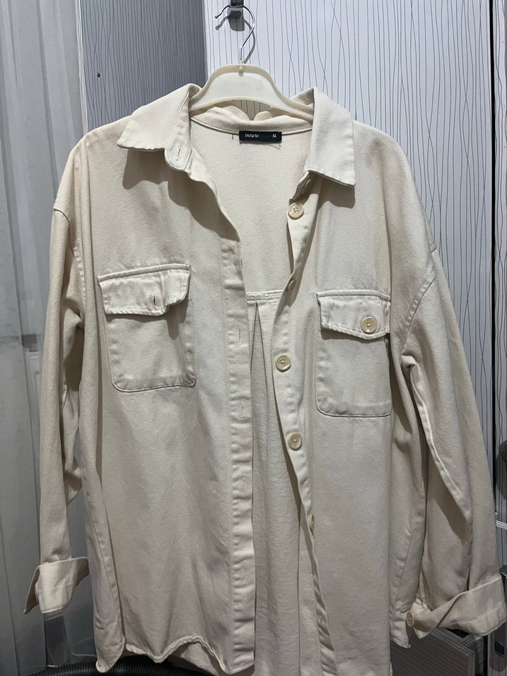 Düğmeli Beyaz Kot Salaş Gömlek