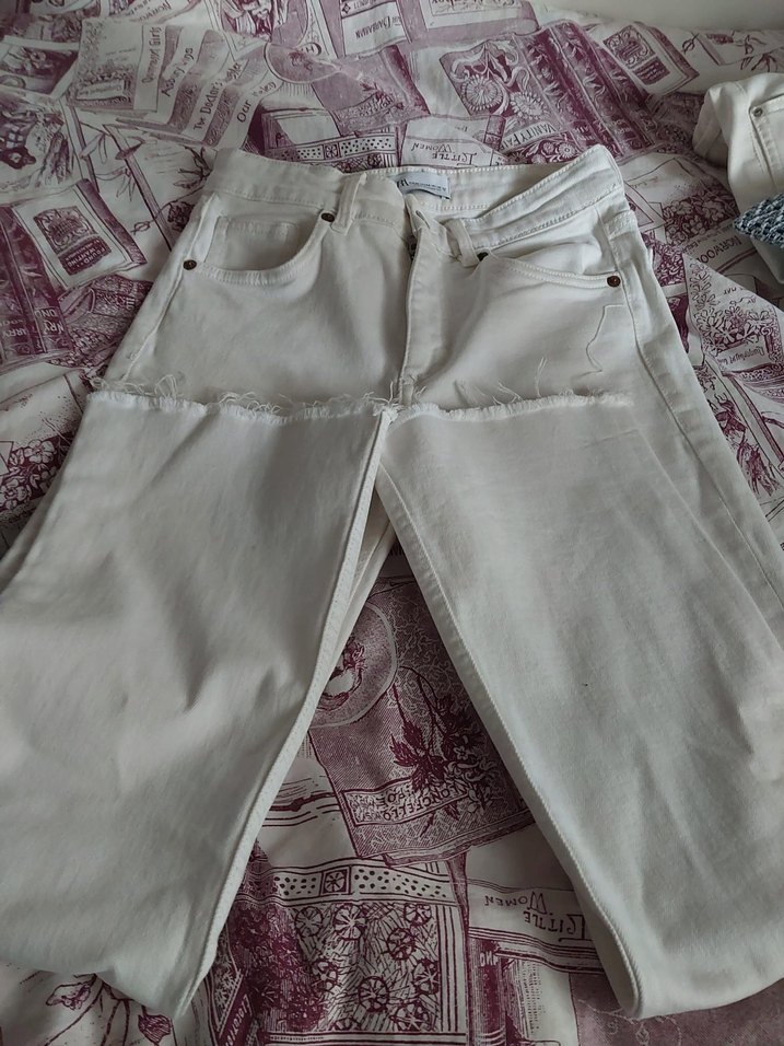Düğmeli Beyaz Midi Boy Kadın Jean