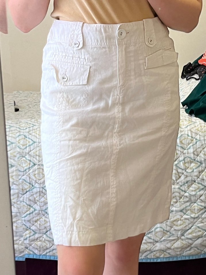 Düğmeli Beyaz Midi Etek