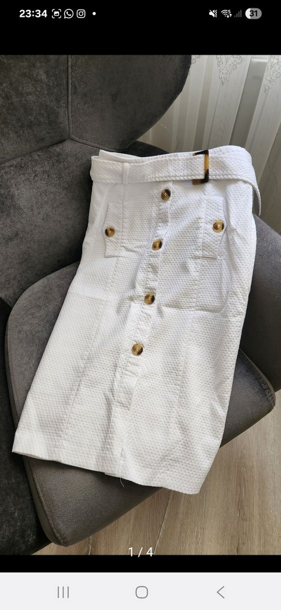 Düğmeli Beyaz Midi Etek