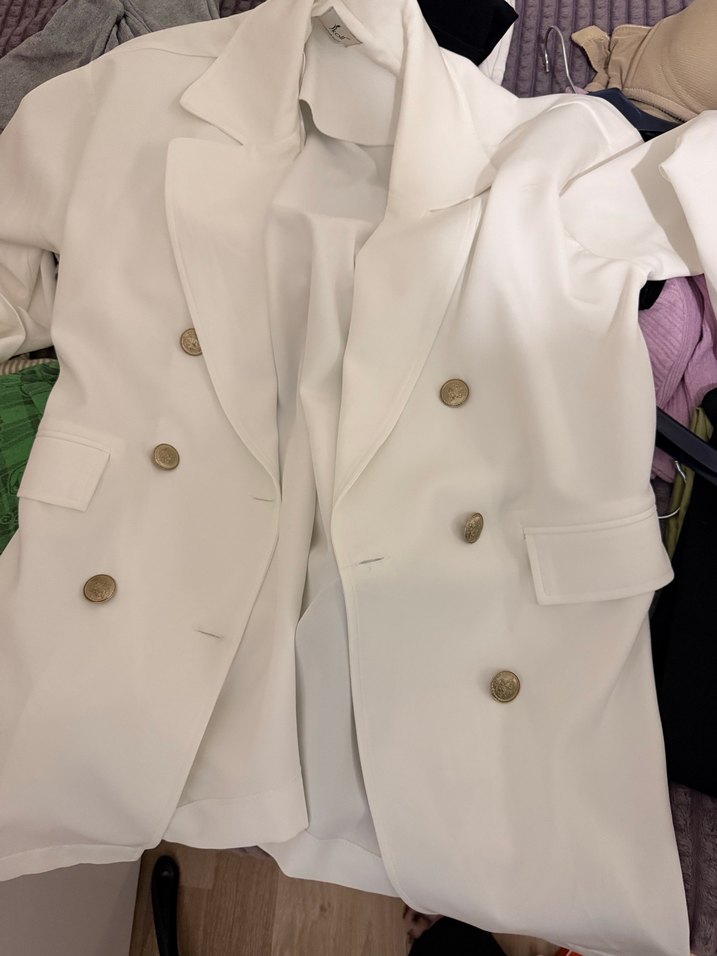 Annem için almıştık ama giymedi 44 46 bedene rahatlıkla olur her şeyle kombin yapabilirsiniz beyaz blazer ceket