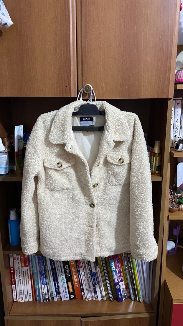 Düğmeli, beyaz renkte, notlu yaka ve uzun kollu kadın ceket. Yumuşak ve sıcak kumaştan, rahat kesim ve midi boyda, günlük sokak stiline uygun. Bedeni bana olmuyor artık o yüzden satıyorum hiç kullanılmadı