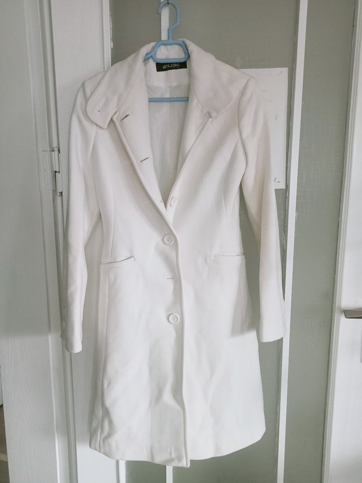 Düğmeli Beyaz Midi Kadın Ceket