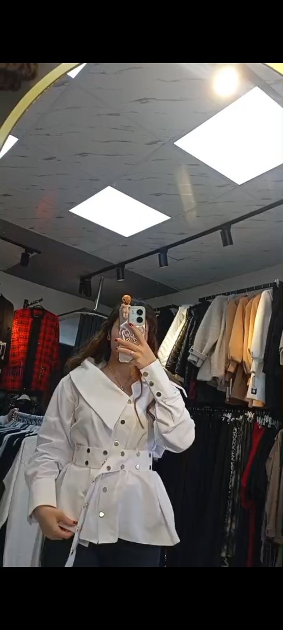 Pamuk kumaştan yapılmış, düğmeli, beyaz, uzun kollu, yakalı ve belden oturan midi gömlek Sokak stili ve günlük kullanım için uygundur. nedenleri mevcut