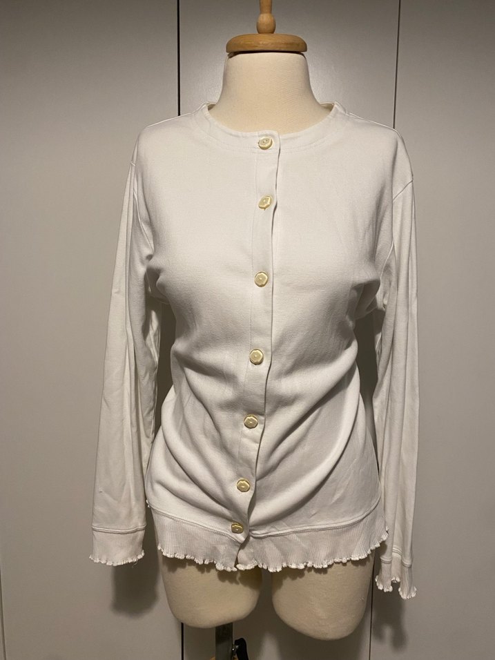 Düğmeli, yuvarlak yakalı, uzun kollu beyaz hırka. Yumuşak keten kumaştan, rahat kesim ve midi boyda, günlük kullanıma uygun. TAKASA AÇIK ✅ Az kullanıldı yeni ve temizdir herhangi bir sorunu yoktur. 24 saat içerisinde kargoya verilecektir.