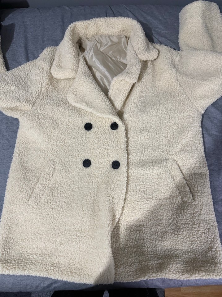 Düğmeli beyaz midi uzunlukta kadın kabanı. uzun kollu ve yumuşak ve sıcak kumaştan üretilmiştir. Rahat sokak stili için uygun. ❄️ son iki fotoğrafta kusurları gösterilmiştir en önde kıvrılma ve kol kısmında iç astarda yırtılma mevcuttur.
