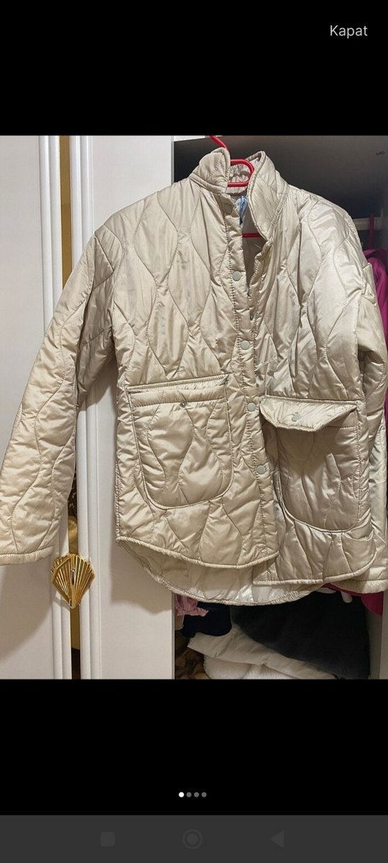 Beyaz renkli, düğmeli, cep detaylı, uzun kollu ve notalı yakalı, rahat kesim midi kadın ceketi. Günlük kullanım için uygun, yumuşak sentetik kumaştan üretilmiştir. kapitone ceket/mont fiyatı 379TL