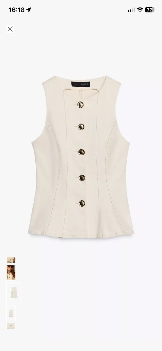 Düğmeli ve yakalı beyaz, midi boy kadın yeleği. Regular kesim, kol kısmı kolsuz ve ofis kullanımı için uygun, sentetik kumaştan üretilmiştir.