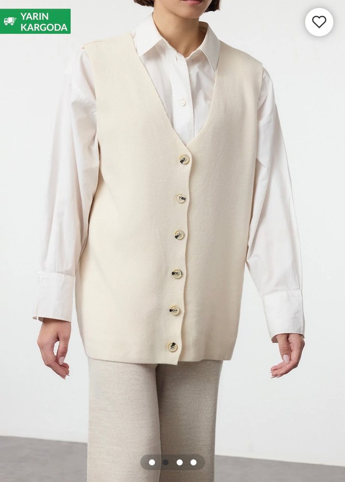 Pamuk kumaştan yapılmış, düğmeli, normal kesim beyaz midi yelek. Takımdır pantolonlu Ofis için uygun, kolsuz ve yakası kesik. KARGODA, YARIN.