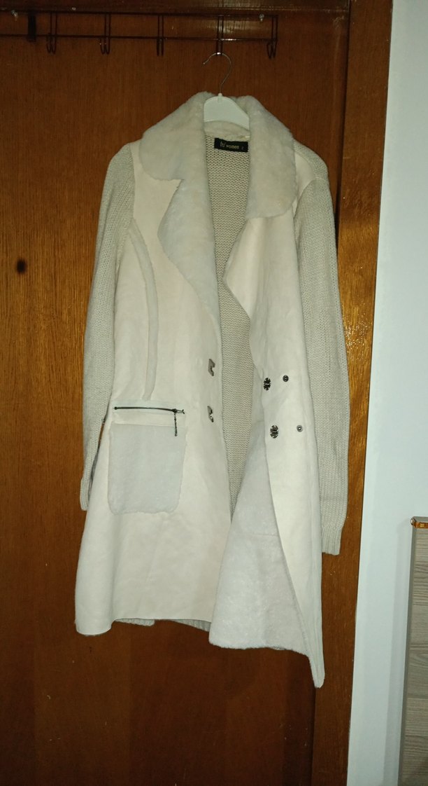Beyaz midi uzunlukta, düğmeli ve süet kumaştan yapılmış anne montudur. Notlu yaka ve uzun kolludur, günlük kullanıma uygundur.
