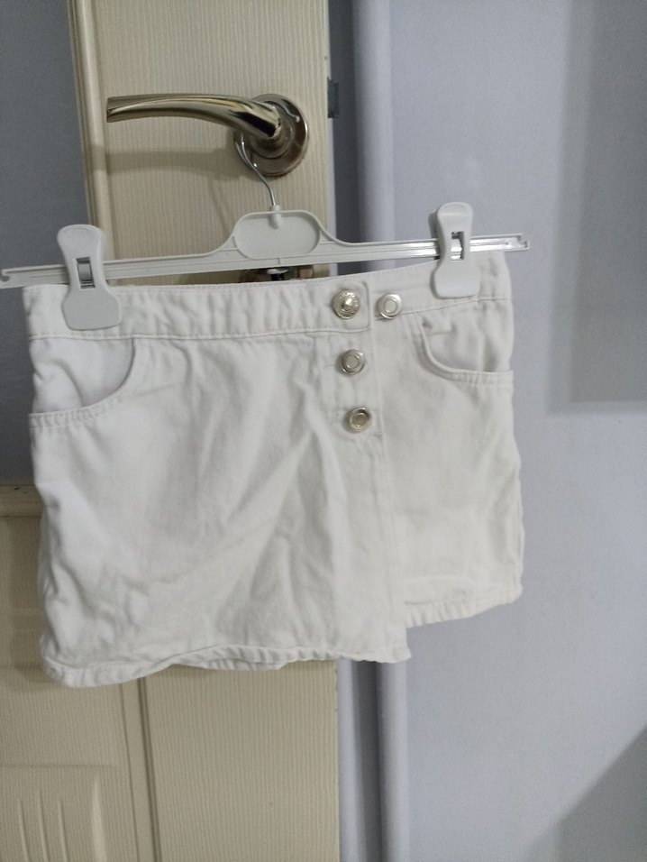 Düğmeli beyaz mini etek, pamuklu ve rahat kesimli. Minimalist ve günlük kullanıma uygun tarz sunar.