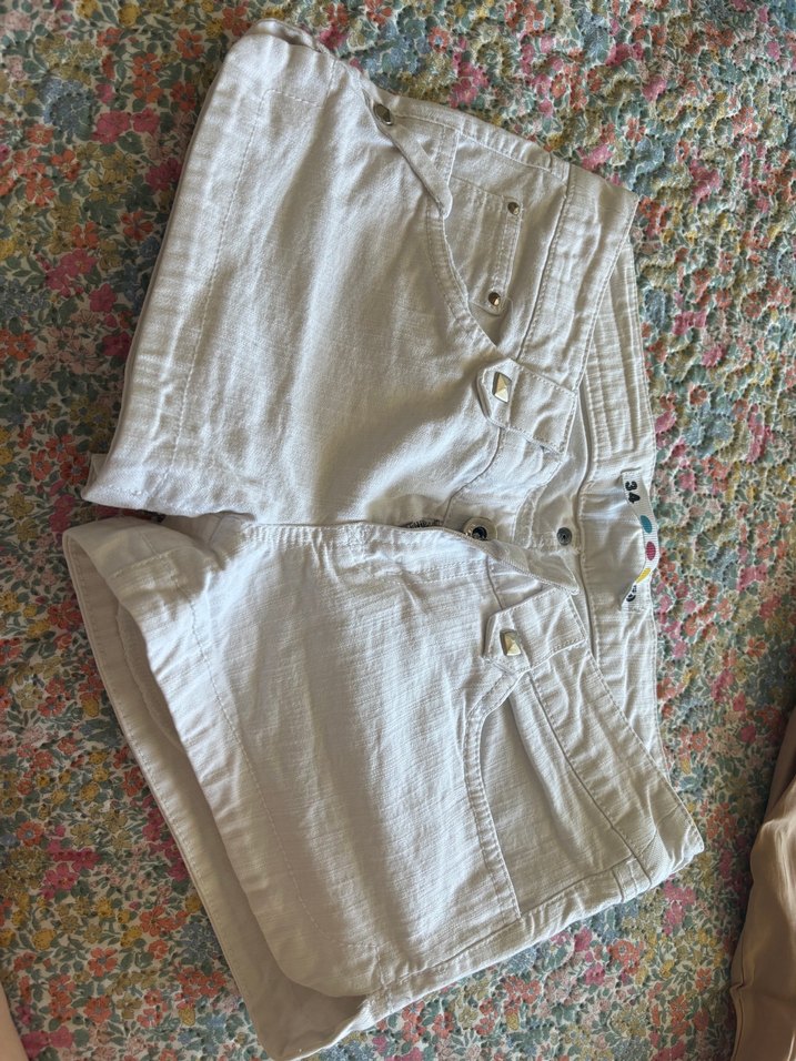 Pamuklu, düğmeli, bol kesim beyaz mini şort. Bohem tarzıyla günlük kullanıma uygun.