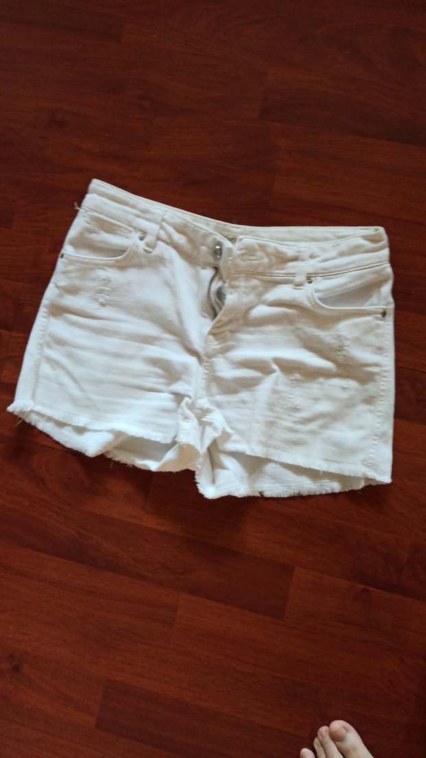 Pamuklu, düğmeli, bol kesim beyaz mini kadın şort. Günlük rahat sokak stili için uygundur.