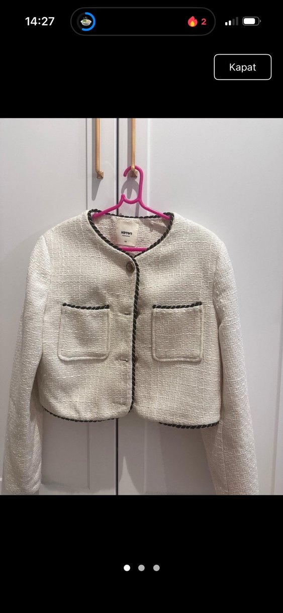 Düğmeli Beyaz Mini Triko Ceket