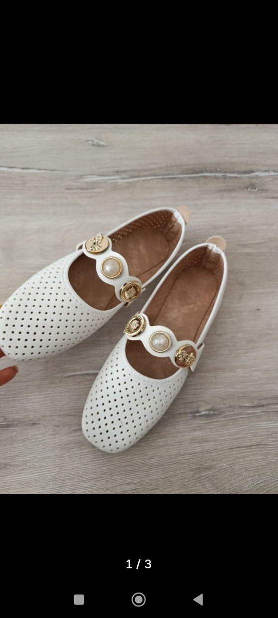 Düğmeli Beyaz Modern Klasik Kadın Babet 37