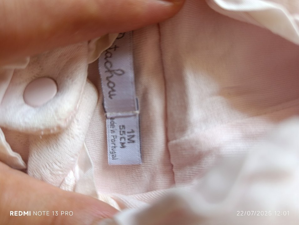 Düğmeli, beyaz renkte, nakışlı detaylara sahip pastel tonlarda bebek kız tulumu. Notch yaka kesimiyle şık ve kullanışlıdır. ❄️