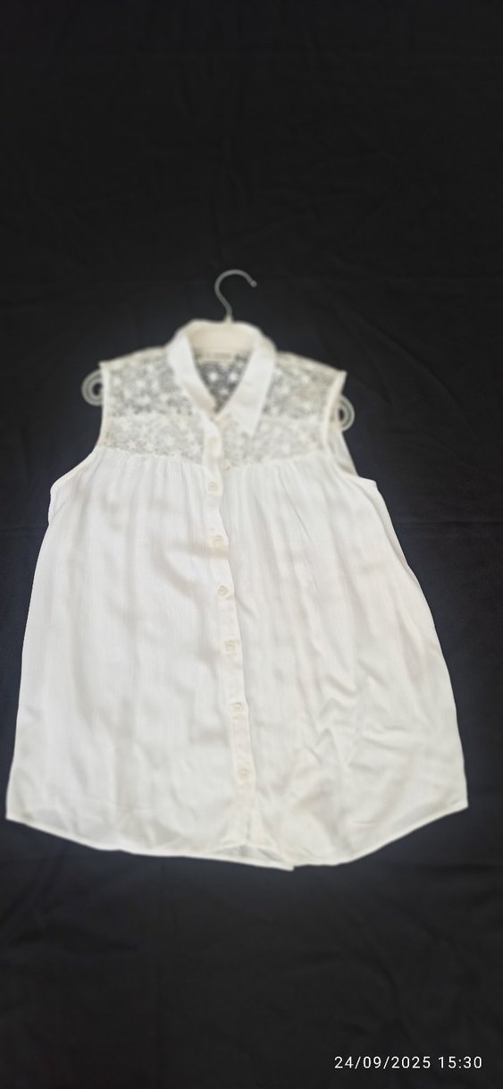Düğmeli Beyaz Nakışlı Kolsuz Kız çocuk Gömlek