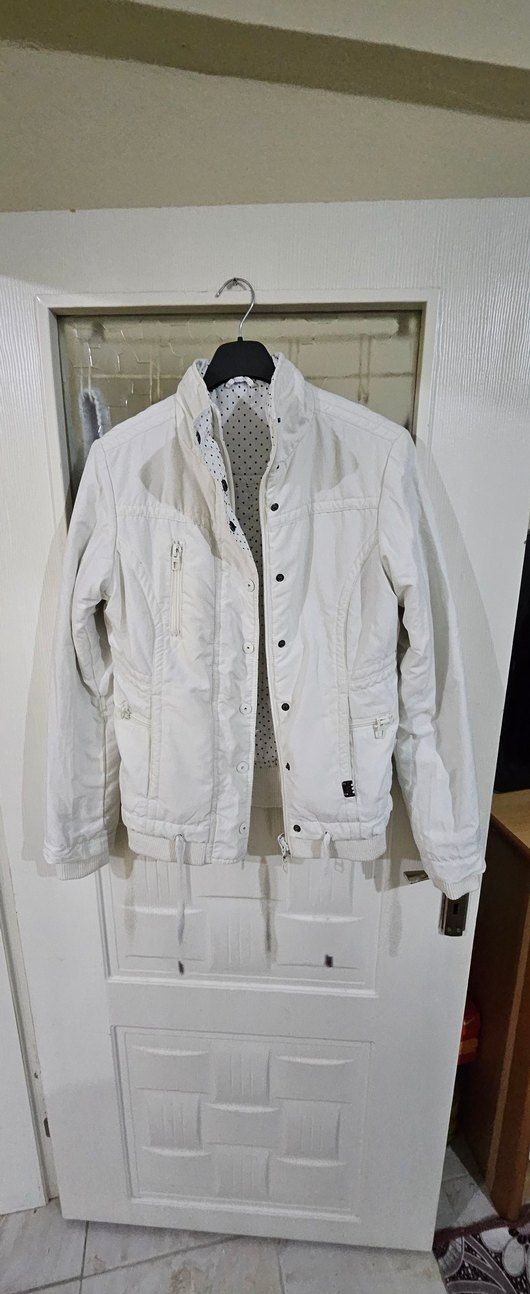 Düğmeli Beyaz Pamuklu Kadın Ceket