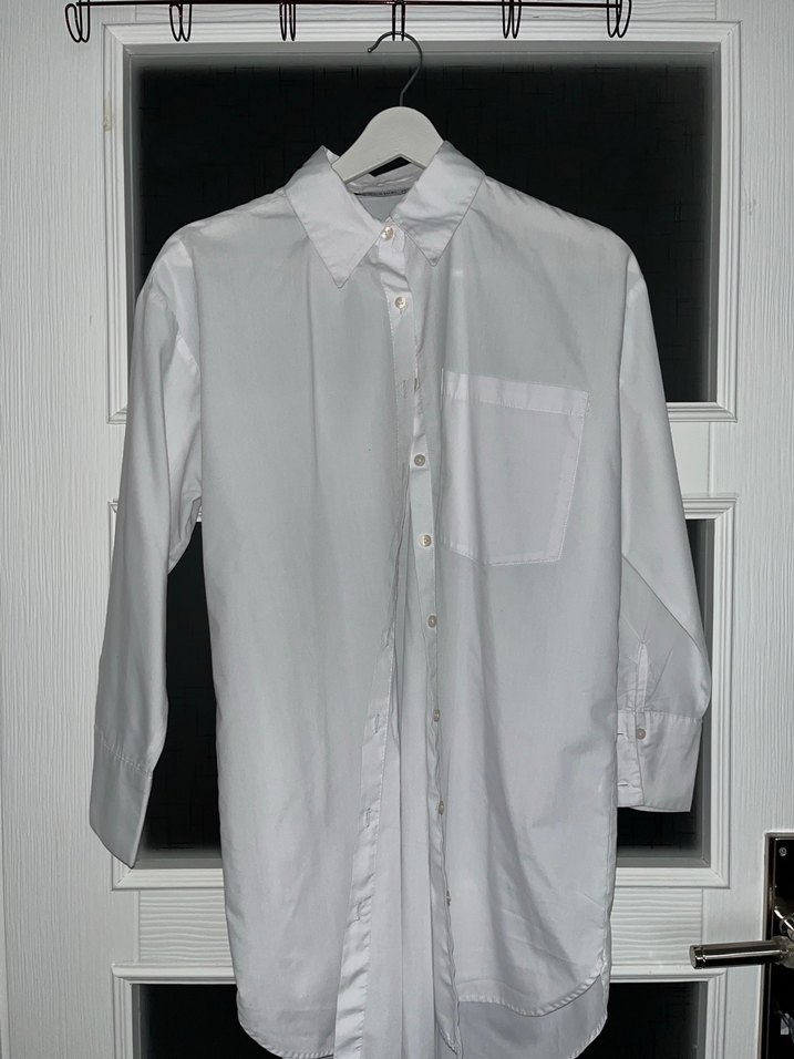 Düğmeli Beyaz Pamuklu Kadın Gömlek