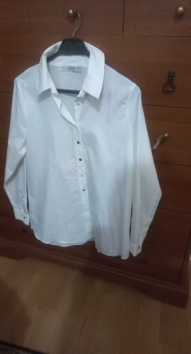 Düğmeli Beyaz Pamuklu Kadın Gömlek
