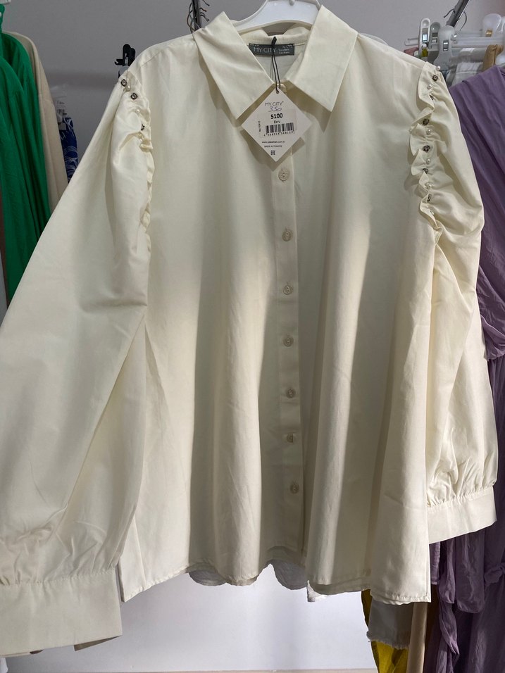 Düğmeli beyaz pamuklu gömlek, uzun kollu ve yakalıdır. Salaş kesimi ve normal boyu ile ofis için uygundur. Mağaza ürünüdür sıfır ürün etiketli defosuz mağazayı kapattığımız için kalan ürünleri alış fiyatına satıyoruz daha uygununu assssla bulamazsınız rengi krem beyaz l-xl uyumlu
