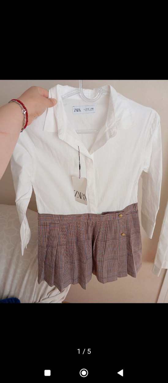 Pamuklu kumaştan üretilmiş, düğmeli, beyaz gömlek. Salaş kesimli, kısa boylu ve baskılı mini etek görünümlü detaylarla sokak stiline uygun.