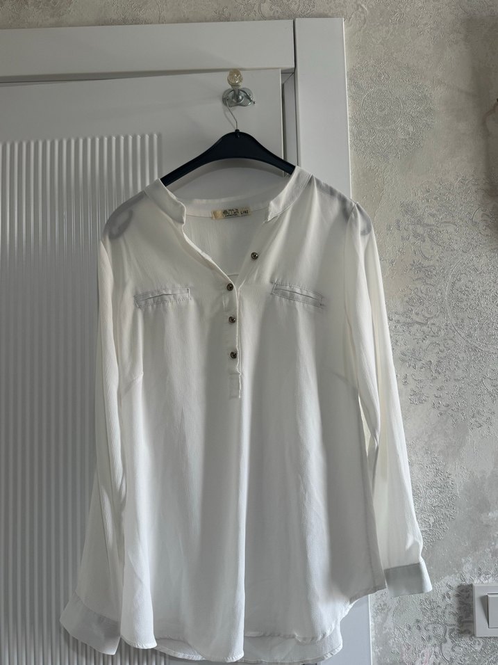 Pamuklu, düğmeli, V yakalı, uzun kollu beyaz gömlek. Salaş kesim ve normal midi boy ile gündelik bohem tarz için uygundur.