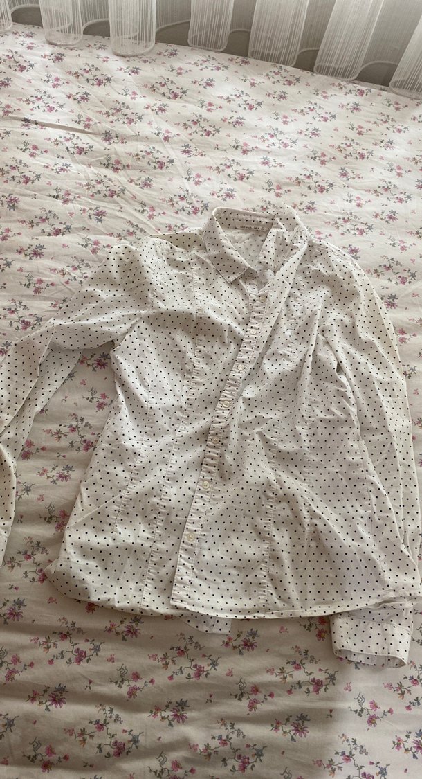 Düğmeli Beyaz Puantiyeli Uzun Kollu Gömlek
