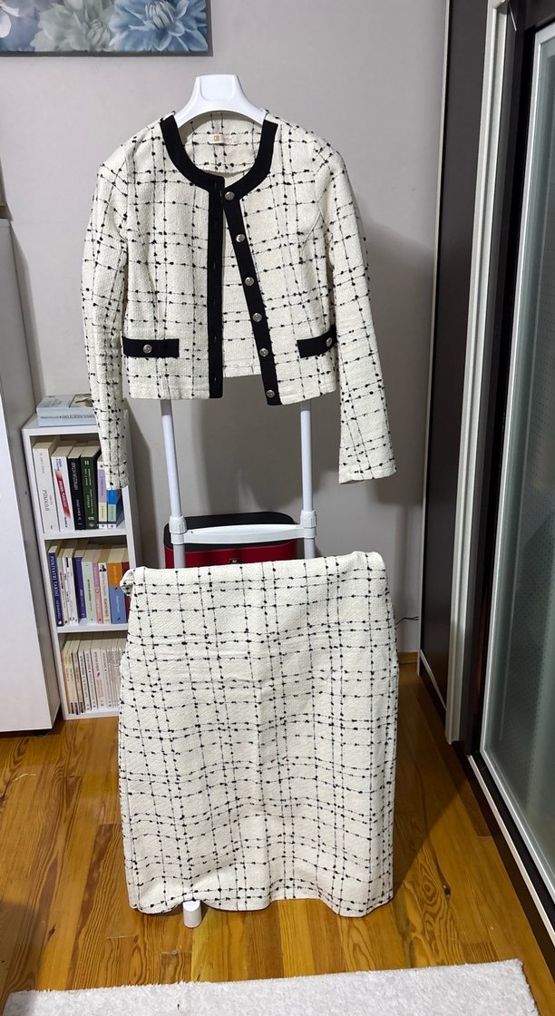 Düğmeli Beyaz Siyah Ekose Kadın Takım