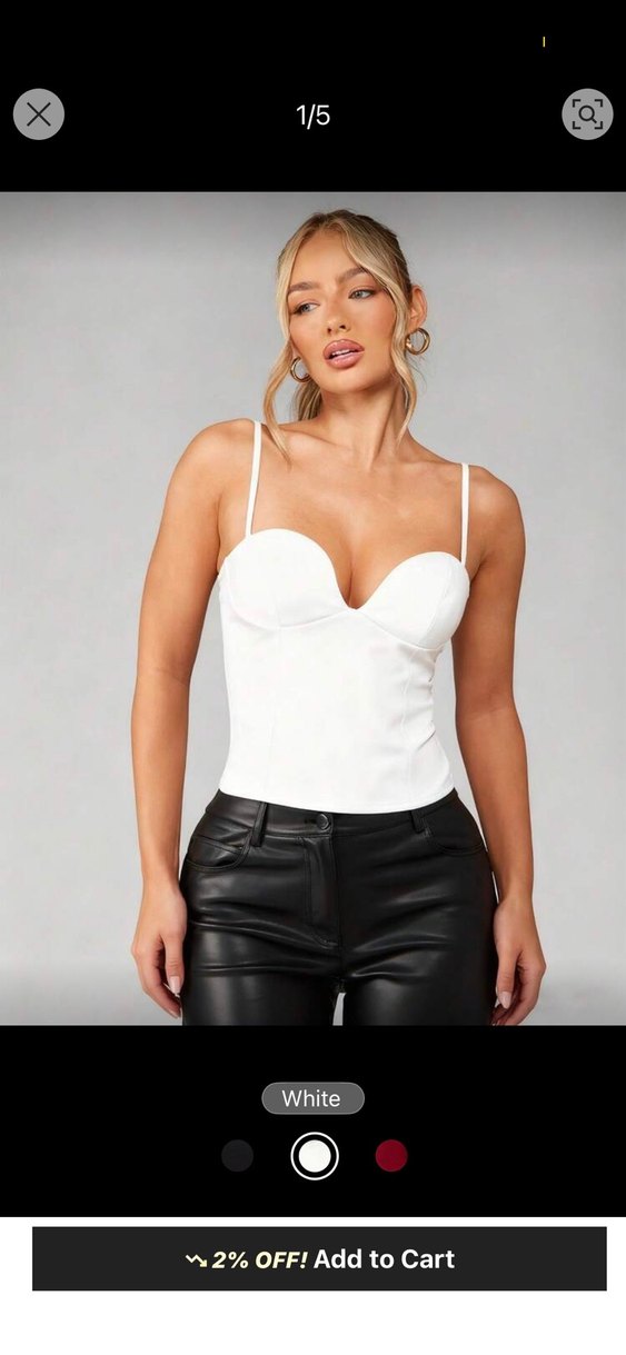 Düğmeli, askılı beyaz bustiyer. Düz, sintetik kumaştan, günlük sokak stiline uygun minimalist tasarım.