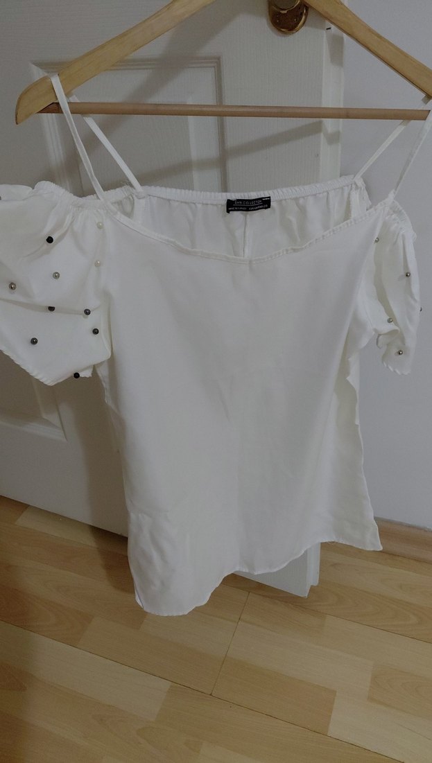 marka zara degildir Pamuk kumaştan, düğmeli detaylı kısa kollu beyaz straplez mini bluz. Rahat kesimiyle günlük sokak stiline uygun.