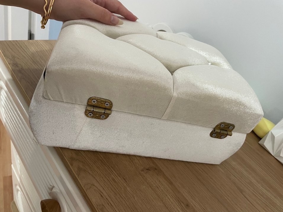 Düğmeli detaylı, altın detaylı beyaz süetmodern klasik tarzda ve düğünlere uygun.✨