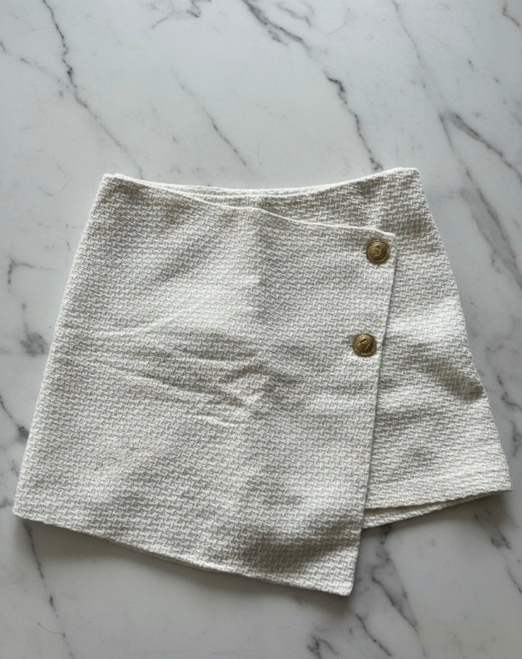 Düğmeli Beyaz tüvit Mini Etek