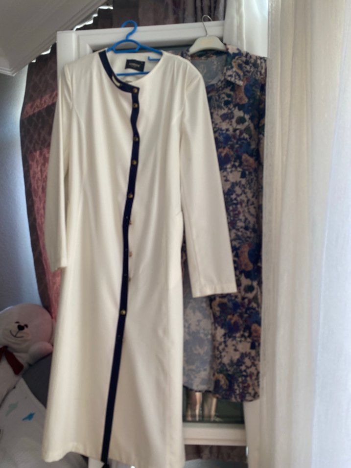 Düğmeli Beyaz Uzun Hamile tuniği