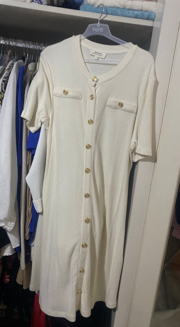 Düğmeli Beyaz Uzun Kadın Elbise