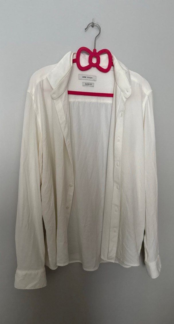 Beyaz renkli, düğmeli ve yakalı erkek gömlek. Uzun kollu ve normal kesim, sentetik kumaştan üretilmiştir. Ofis kullanımına uygundur. Dış çekimde kullandık çok güzel tiril tiril bir gömlek