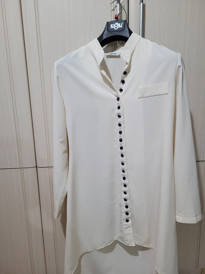 Düğmeli Beyaz Uzun Kollu Kadın Gömlek